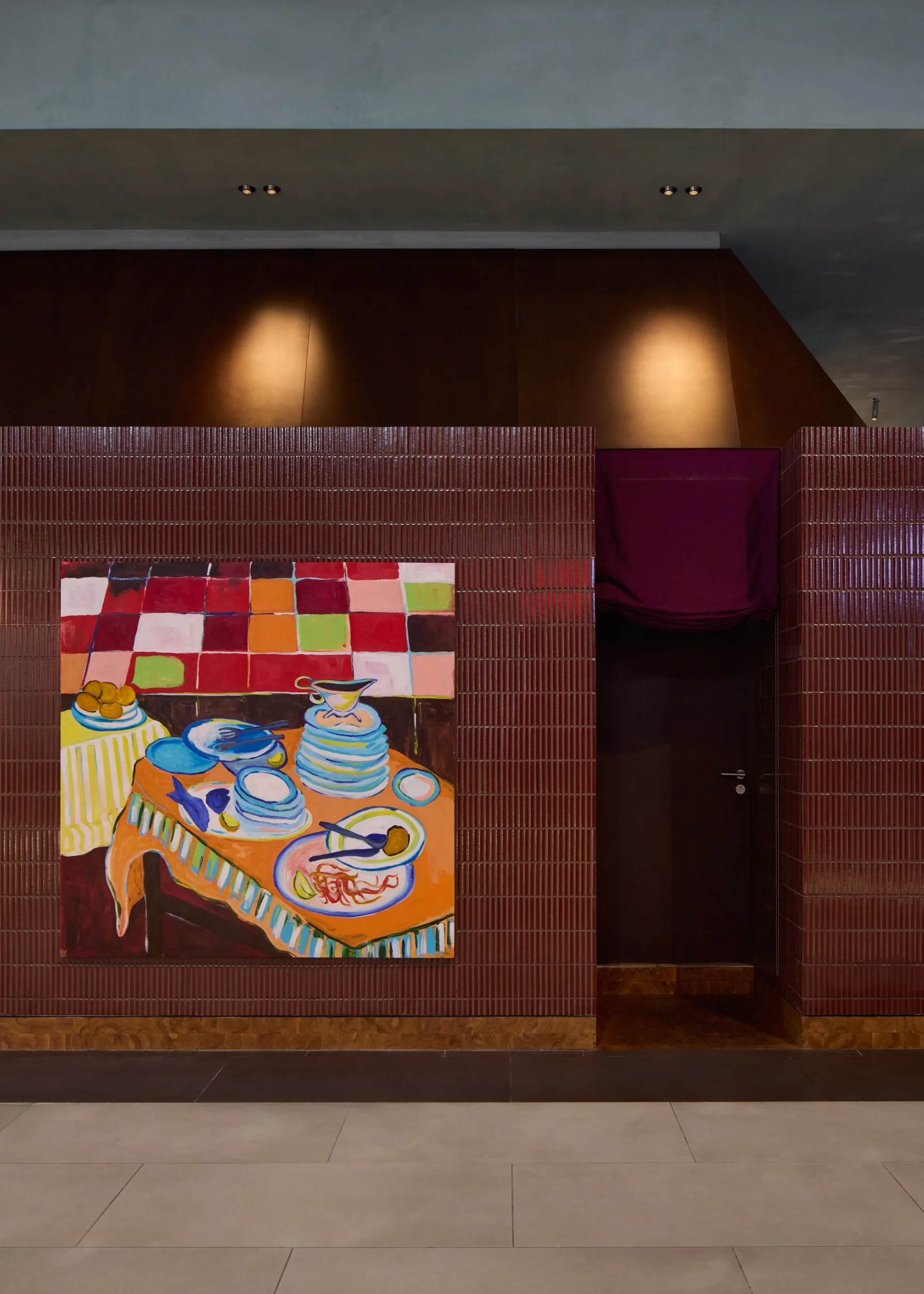 Restaurant People (Dubai, UAE – 2025) Artist: Dora Dalila Cheffi | Architects: Bone Studio | Photo: Oculis Project